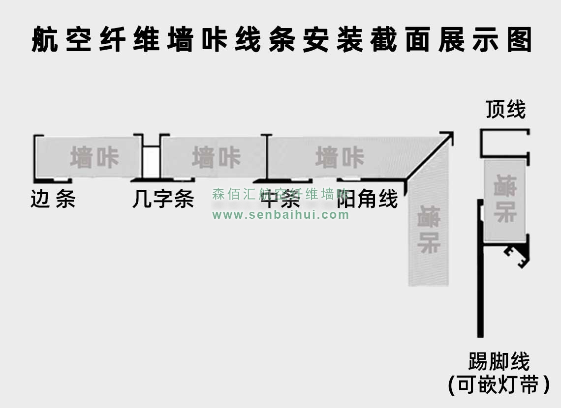 梅州航空纤维墙咔铝合金带灯中条(钛金氧化)